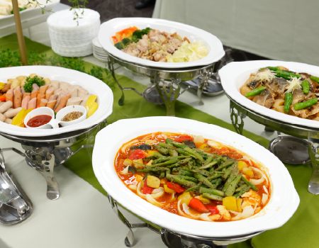 保温容器や現地仕上げにより、温かい状態でお料理をご提供。五感で楽しめる、真心こめたおもてなしをお届けします。